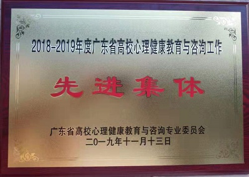 11月13日至14日,2019年广东省高校心理健康教育与咨询专业委员会学术年会在江门鹤山举行。学校心理咨询中心荣获“2018-2019年度广东省高校心理健康教育与咨询工作先进集体”称号,受到大会表彰。学校近年来多次获此殊荣。