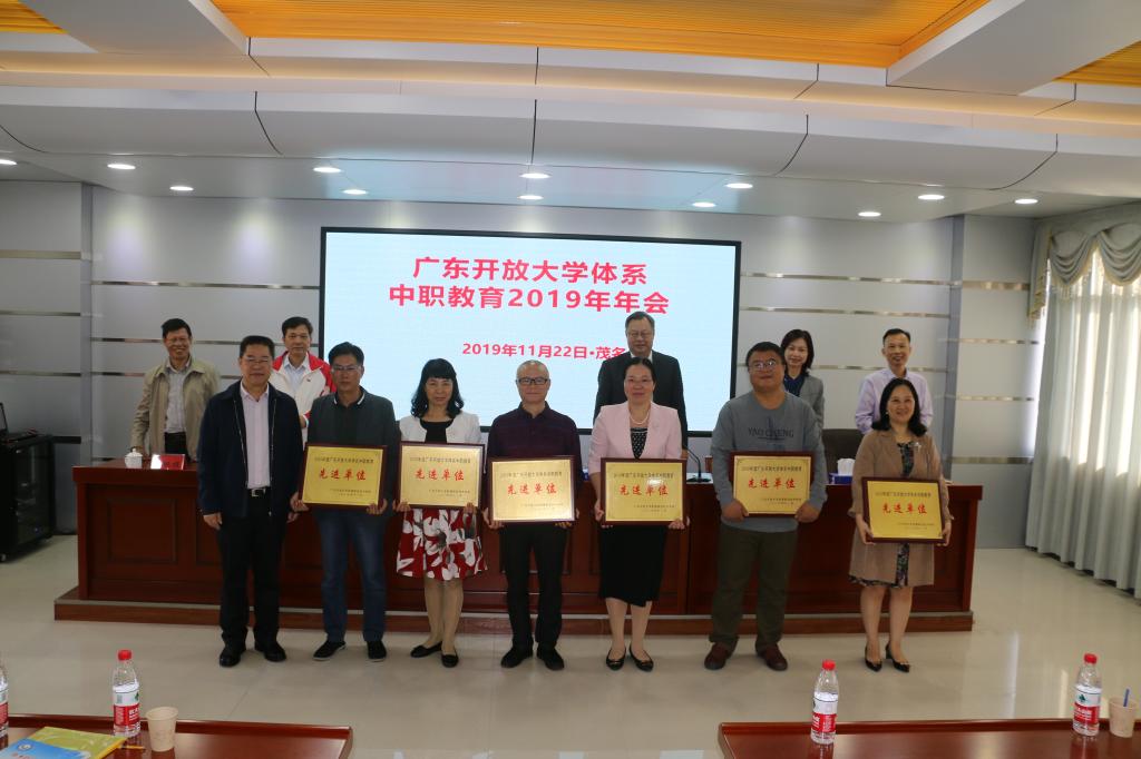 会议对2019年中职教育先进单位、2019年度优秀毕业生和三好学生等进行了表彰,广东开放大学陈显强副校长为2019年中职教育先进单位颁发了奖牌。