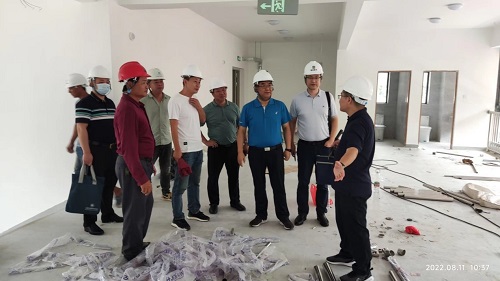 学校中山校区四期校园工程项目(“提毛”工程项目)是广东省2022年重大项目之一。按照相关安排,8月11日上午,省教育厅发展规划处处长龙海山、职业教育与终身教育处调研员周宝堂一行来学校中山校区调研指导项目建设工作。学校副校长宋波和后勤基建部负责同志及有关人员陪同。