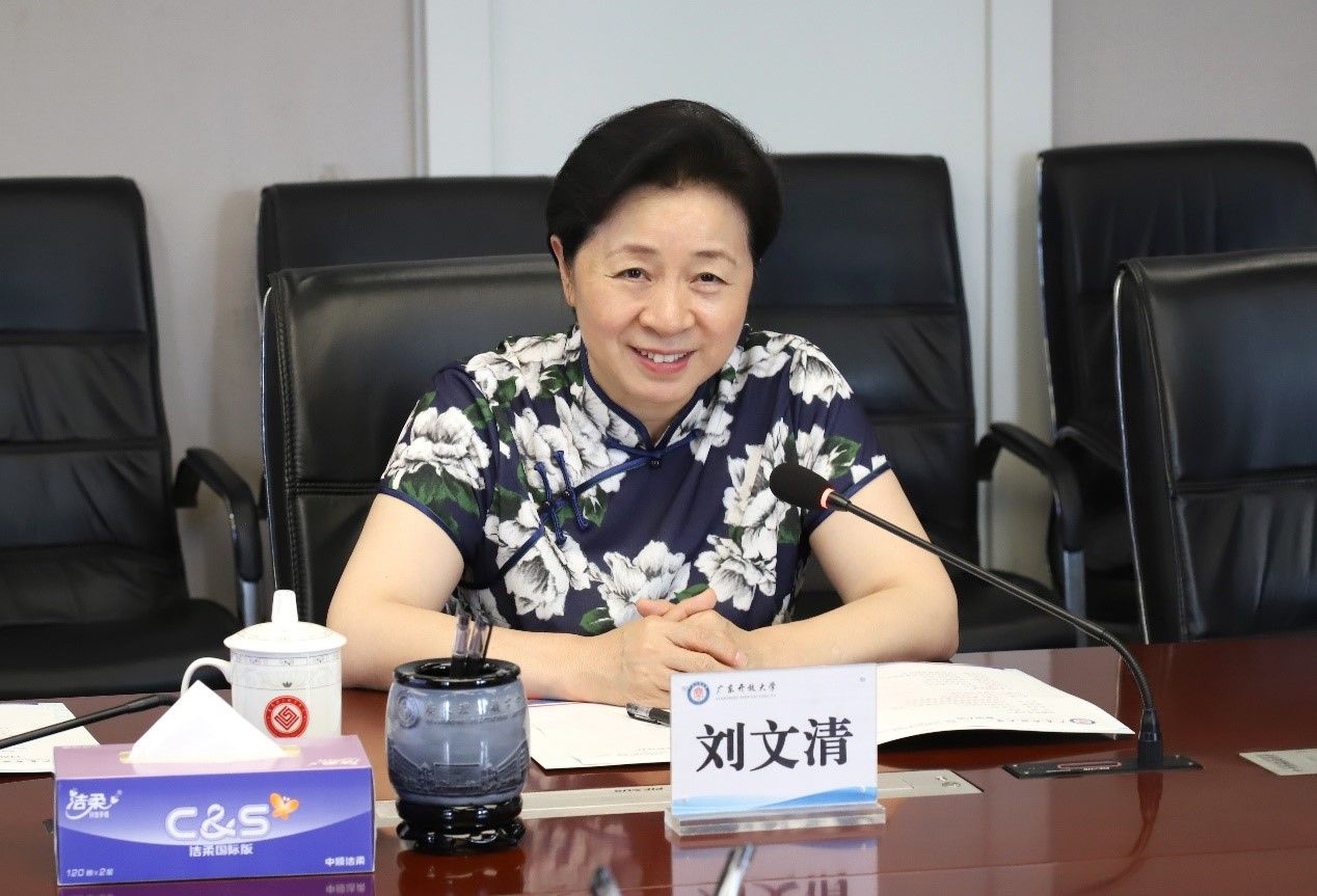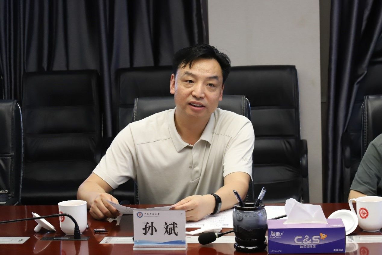 刘文清代表学校对孙斌一行的到来表示热烈欢迎。她简要介绍了学校基本情况和办学特色,指出学校坚持以习近平新时代中国特色社会主义思想为指导,落实立德树人根本任务,坚持“一体两翼三化”发展战略,在服务国家战略、人才培养、学分银行建设、职继融通、老年教育、乡村振兴教育等方面取得显著成效。一是形成“双擎牵引”高质量发展强劲动力。学校形成了以省强特色高等学校建设驱动开放教育高质量发展、以高水平高职学校建设驱动职业教育高质量发展的“双擎牵引”的开放教育、职业教育协同发展新格局。二是形成“三教协同”发展基础优势。学校同时举办职业教育、高等教育、继续教育,覆盖了中职中专、大专、本科和研究生联合培养等完整的学历教育办学层次,实施中职与开放教育专科、高职与开放教育本科的“职继融通”人才培养试点多年,积累了大量经验,为率先探索“三教协同”发展奠定了良好基础。三是形成助推学习型社会建设的体系优势。学校构建了省、市、县(区)联动的终身教育办学网络,大力推动终身教育学分银行制度的实践应用,搭建人才成长“立交桥”,助推广东学习型社会建设。四是形成助力“制造业当家”的科产教融合模式。学校主动融入区域发展重大战略部署,根据广东省高端产业、产业高端发展需要,不断优化专业、学科布局结构,推动学科、专业群由产教融合向科产教融汇转型发展,形成服务全省“制造业当家”的人才培养合力。五是形成服务“百千万”工程的人才培养优势。学校持续优化乡村振兴教育“云浮模式”,省地共建云浮乡村振兴学院,采用“学院+分院+教学点(基地)”办学模式,形成“1+21+4”的教学网络平台,把学校办学体系延伸到镇村,把大学办到老百姓家门口,把教育服务送到田间地头,聚力解决镇村干部和新型职业农民“在家门口上大学”的“最后一米”问题。