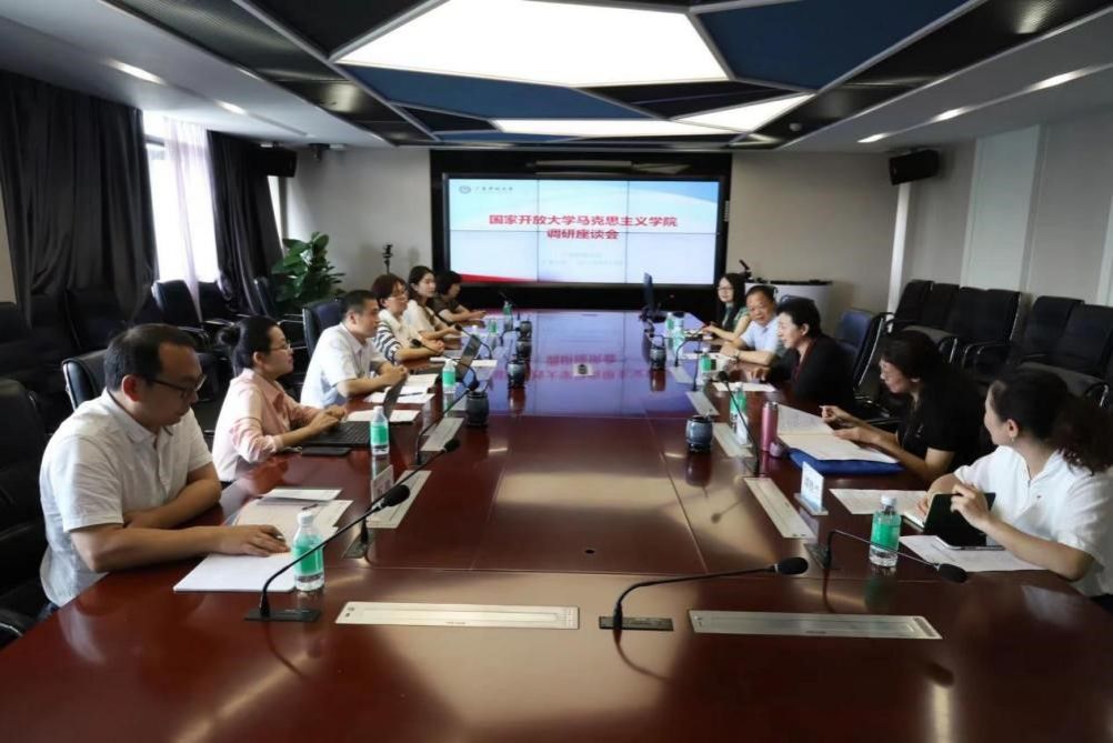 刘文清代表学校对调研组的到来表示欢迎。她简要介绍了学校基本情况和办学特色,指出学校坚持以习近平新时代中国特色社会主义思想为指导,高度重视并大力推进马克思主义学院建设,在建设思政教育课程资源、创新思政课教学、加强课程思政建设等方面取得系列成果,有力有效推进习近平新时代中国特色社会主义思想和党的二十大精神进教材、进课堂、进头脑。希望和国家开放大学一起提升办学理念,创新工作思路,统筹体系力量,充分运用远程教育优势,以打造精品金课为目标,实现思想政治教育资源共建共享。马克思主义学院负责同志和相关课程负责人分别作了专项汇报。双方就课程资源建设、教学团队建设、教学平台设计、课程考核方式等进行了深入交流。