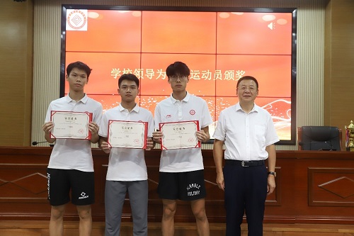 孙平为罗泽阳、潘毅豪、宋淇同学颁奖