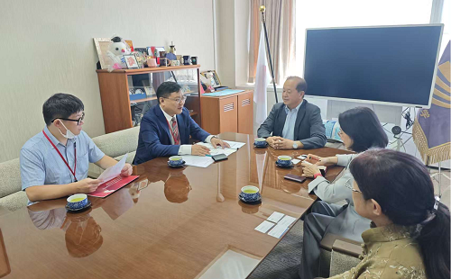 在韩国放送通信大学,出访团实地调研了该校的大学数字学习中心、老年教育支持服务中心、远程教育内容制作与传播中心及校园智慧后勤系统,亲身体验在线教育平台建设、老年教育项目实施及课程资源制作等内容。在座谈会上,双方交流了远程教育、老年教育、研究生教育、师资培训等内容,并达成了初步合作意向。