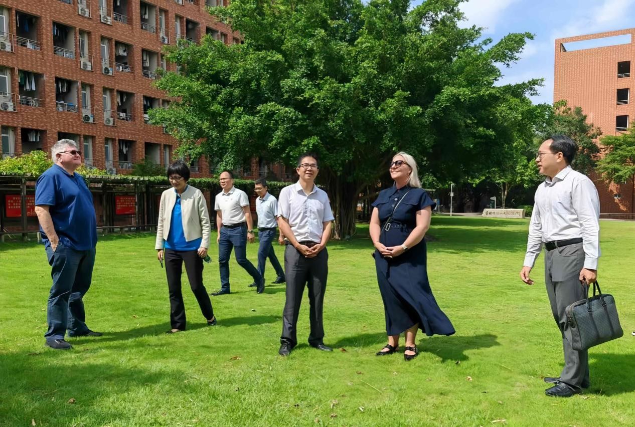 座谈会结束后,Kate Neam一行在丁晋清的陪同下参观了中山校区,对校园优美的自然生态环境、浓厚的人文育人氛围给予高度赞赏,并再次表达对两校合作前景的坚定信心,期待未来共同探索更多元化的合作路径,开启教育合作新篇章。