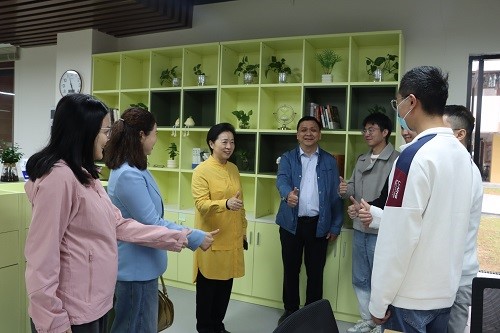 在一站式学生社区和教师休息室,刘文清重点考察了其服务学生和教师群体的效能。她指出,《建议》是以人为本的中国式现代化发展蓝图。社区治理要深刻体现以学生为中心的理念和精细化管理要求。社区建设必须紧密结合高职学生全日制在校、集体生活、注重实践技能培养的特点,进一步优化“线上+线下”融合服务平台功能,让学生在细致周到的服务中感受到治理效能,增强归属感与获得感。教师休息室是教师课间舒缓压力、交流研讨的重要空间,要结合学校大部分教师跨校区往返的特点,进一步优化休息室的功能布局与环境设计,建设成为舒缓身心、启迪思想、凝聚共识的“教工之家”,让广大教师在繁忙工作之余感受到学校的关怀与尊重。