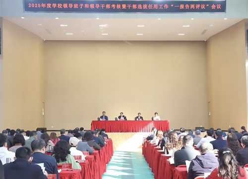 1月19日,学校召开2025年度领导班子和领导干部考核暨干部选拔任用工作“一报告两评议”会议。学校党委书记幸小涛主持会议,并代表学校领导班子作2025年度工作总结,代表学校党委作干部选拔任用工作报告。校领导,全体中层干部、教职工代表等参加会议。省委教育工委指导组到会监督指导“一报告两评议”工作。