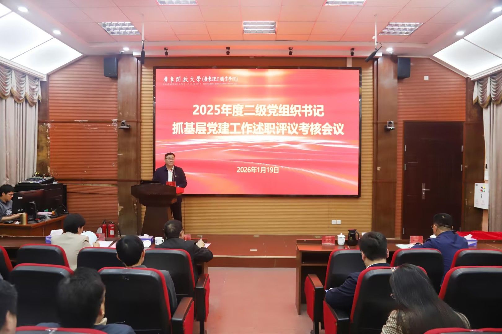 1月19日下午,学校召开2025年度二级党组织书记抓基层党建工作述职评议考核会议,听取二级党组织书记抓基层党建工作述职并进行评议。学校党委书记幸小涛主持会议并讲话。校领导,党委委员、纪委委员,学校党的建设和全面从严治党工作领导小组成员,机关党委、各党总支、直属党支部负责同志参加会议。