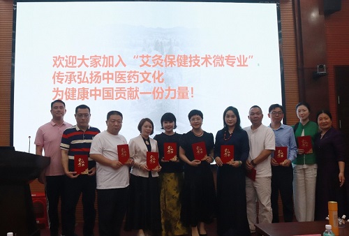 仪式现场还举行了首批校内教职工艾灸师资证颁发仪式,标志着学校艾灸教育专职师资队伍正式组建,为微专业教学质量提供了坚实保障。首批师资均通过理论考核与实操认证,具备《保健艾灸师》三级及以上职业资格,将承担微专业核心课程教学与实训指导工作。