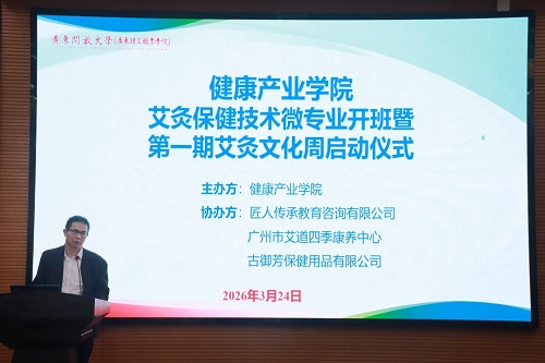 3月24日,学校艾灸保健技术微专业开班暨第一期艾灸文化周启动仪式在白云山校区举行。学校党委委员、副校长丁晋清出席活动并致辞。