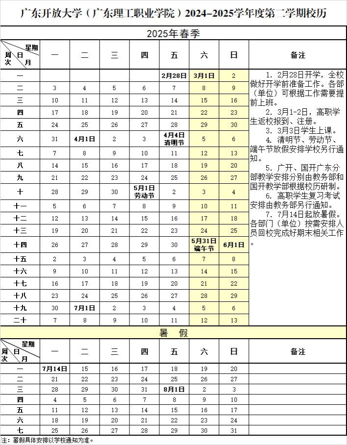 2024-2025学年第二学期校历